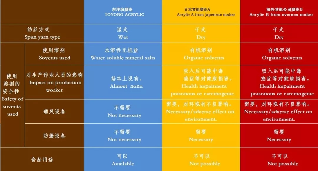 食品級腈綸材料的基礎是東洋紡腈綸不同與其他公司的制造方法和安全性: